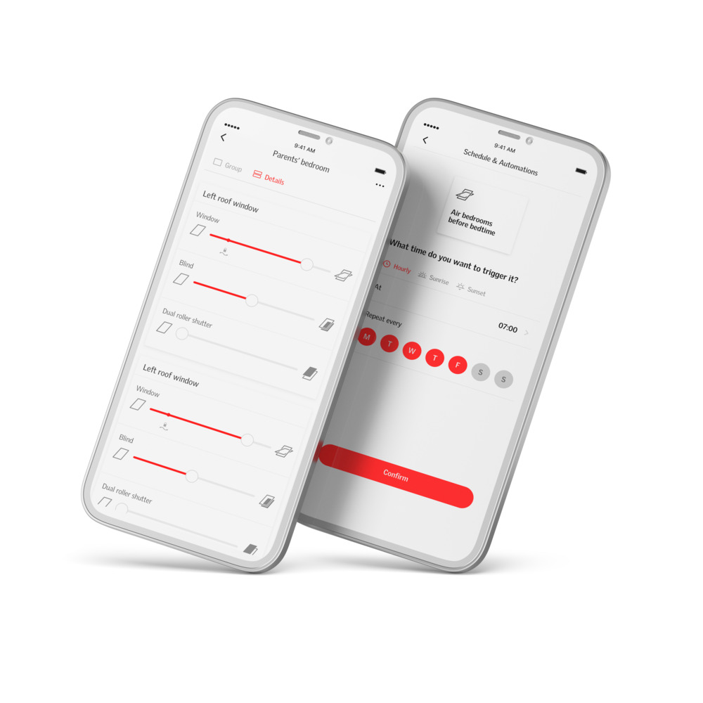 VELUX App Control zapewnia pełną kontrolę nad wszystkimi produktami VELUX bezpośrednio z telefonu. Otwieraj i zamykaj elektryczne i solarne okna dachowe, rolety i osłony zewnętrzne jednym ruchem palca lub zgrupuj produkty VELUX dla jeszcze większej wygody.